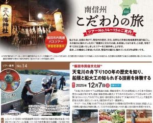 令和7年11月2日(日)に南信州こだわりの旅「“歴史の道 遠州街道を辿る”②下條~阿南編」が催行されました。 昨年秋に第1弾の飯田~下條編を開催しており、今回はその続編となります。天候に…