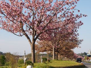 天龍峡桜街道の開花の様子。八重桜系の桜10種類約200本が約2kmの通りに植えられており、例年4月中旬から下旬にかけて段々と花を咲かせます(当日の開花状況は今後の気象状況によります)。