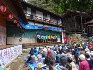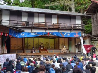 大鹿歌舞伎は国重要無形民俗文化財に指定されており、古くから地元の方によって伝承されてきました。化粧、着付け等の準備も村の人が行っております。鑑賞スタイルも、神社境内にある舞台にて公演され、屋外での鑑賞になります。かしこまっての鑑賞ではなく、座布団を敷いて、ご馳走を食べ、飲みながら歌舞伎を楽しむことが出来ます。