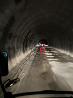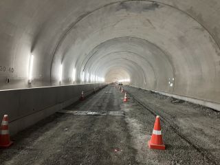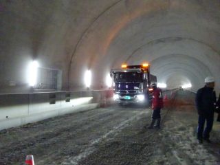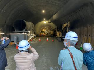 トンネルに入るときは開通後、車が走る「本坑」で内部に入りましたが、トンネルから出るときは、開通後、トンネル内部で万が一避難が必要な時に使用するトンネルを走行しました。現在は照明等なく真っ暗で少しドキドキ・・・とても貴重な経験が出来ました。