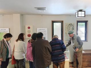お昼は道の駅遠山郷でアマゴと信州サーモンの特製ランチをお召し上がりいただき、午後は今回のメインに据えていた酒井先生が実際に発掘調査をした尾ノ島館(尾ノ島城)跡を訪れました。今はグランドになっているので、やはり専門家の方と訪ねると往時のことに思いを馳せることができます。次に遠山資料館に行き、発掘調査で出土したものを見ながら解説して頂きました。資料館見学の後は隣接の龍淵寺に行き、ご住職から懇切丁寧にご案内頂きました。